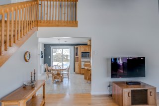 Propriété soigneusement entretenue au fil des années, offrant un cadre de vie paisible dans un quartier calme, à proximité des services. L'aire de vie à concept ouvert, mise en valeur par un plafond cathédrale et une mezzanine, procure une impression de grandeur remarquable ainsi qu'une luminosité généreuse. Poêle au propane créant une ambiance chaleureuse, combiné à une thermopompe pour un confort optimal en toute saison. Pièces spacieuses, chambres de bonnes dimensions et garage attaché chauffé. Une propriété réunissant tous les éléments recherchés pour un cadre de vie idéal.